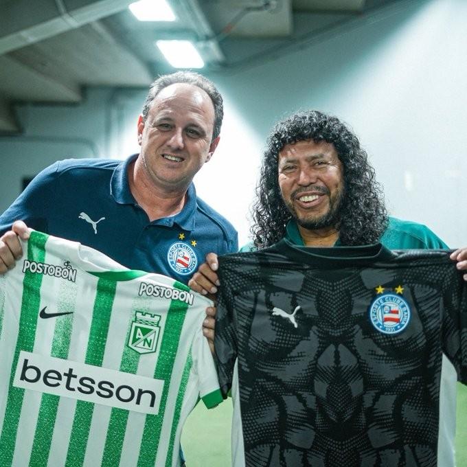 解放者杯官方曬出52歲切尼和58歲伊基塔的合影,球員時(shí)代兩人共打進(jìn)174球。